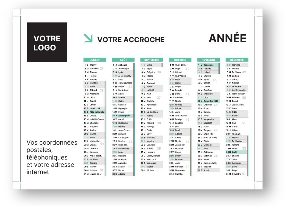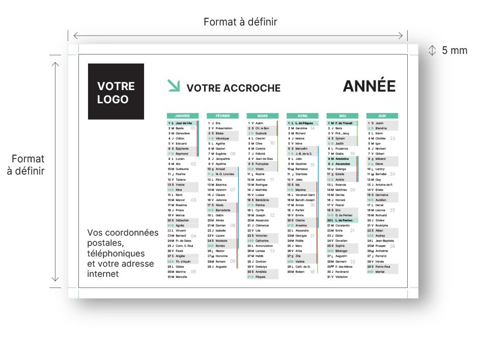 Au-delà de son utilité pratique, le calendrier géant personnalisé offre un espace généreux pour mettre en avant votre logo, votre accroche commerciale et vos coordonnées. Installé dans un espace de travail, il garantit une exposition permanente à votre identité visuelle pendant douze mois.