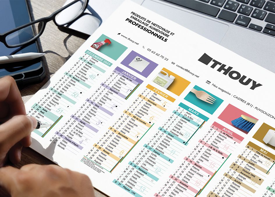 Grâce à son grand espace de personnalisation, le calendrier souple et rigide devient un véritable outil de communication institutionnelle : logo, accroche commerciale, coordonnées, visuels produits ou messages promotionnels peuvent être intégrés de manière harmonieuse.