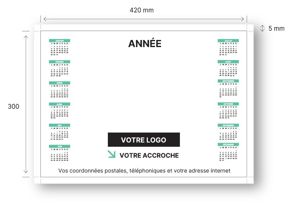 Son grand format assure une excellente lisibilité des mois et des dates. Il constitue un support publicitaire particulièrement efficace pour les entreprises, artisans, professions libérales, agences et collectivités souhaitant renforcer leur notoriété locale. Grâce à son positionnement central sur le bureau, il offre un impact visuel supérieur à de nombreux supports promotionnels traditionnels.